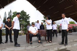 Bupati Robby Dondokambey didampingi oleh Sekretaris Daerah Kabupaten Minahasa, Ibu Dr. Lynda D. Watania, MM., M.Si., Asisten Pemerintahan dan Kesra, Kepala Badan Kesbangpol, Kepala Dinas PUPR, serta para Kepala Bidang di lingkungan Bakesbangpol Kabupaten Minahasa.(MK)