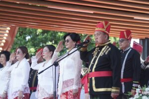 Bupati Minahasa, Robby Dondokambey, S.Si., MAP., bertindak sebagai Inspektur Upacara, memimpin langsung jalannya peringatan yang mengangkat semangat persatuan dan gotong royong khas tanah Toar Lumimuut.