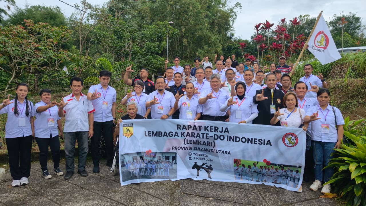 TOMOHON — Pengurus Provinsi Lembaga Karate-Do Indonesia (LEMKARI) Sulawesi Utara menggelar Rapat Kerja Daerah (Rakerda) Tahun 2026 yang berlangsung di Wale Saint Josep, Kota Tomohon, siang tadi. Kegiatan ini menjadi momentum penting dalam memperkuat konsolidasi organisasi sekaligus merumuskan strategi peningkatan prestasi atlet karate di Bumi Nyiur Melambai.